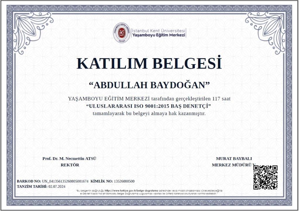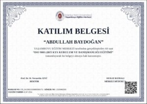 NSCSTR olarak, kalite yönetimi, iş sağlığı ve güvenliği, çevre yönetimi gibi alanlarda uluslararası standartlara uygun sertifikalarımızla gurur duyuyoruz. Bu sertifikalar, işimizi her zaman en yüksek standartlarda yürütmemizi ve müşterilerimize en iyi hizmeti sunmamızı garanti eder. Kalite yönetimi alanında, şirketimiz ISO 9001 standardına uygun olarak sertifikalandırılmıştır. Bu, iş süreçlerimizin sürekli izlenmesi ve iyileştirilmesi yoluyla ürünlerimizin ve hizmetlerimizin müşteri memnuniyetini sağladığı anlamına gelir.